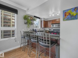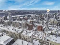 Located just one block from the Legislature grounds, this spacious and beautifully appointed 10th floor condo offers the perfect downtown lifestyle. This bright 2 bedroom + 2 full bath corner unit includes titled, secure & heated underground parking; is walking distance to the LRT, coffee shops, parks, restaurants & all the nightlife downtown has to offer. The open kitchen features granite countertops, breakfast bar & stainless steel appliances, ideal for both everyday living & entertaining. Cozy up by the natural gas fireplace or step outside to enjoy the natural gas BBQ hookup. The primary bedroom includes a wardrobe unit for added storage & full ensuite bath. With west & north exposure you can enjoy incredible views and stunning sunsets over the city skyline. The heat pump system provides both heating & air conditioning for year round comfort. The pet friendly building offers security doors, visitor parking, and a large on site gym. An exceptional opportunity in a prime downtown location.