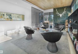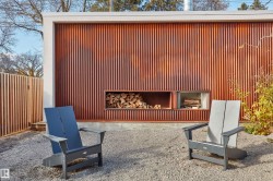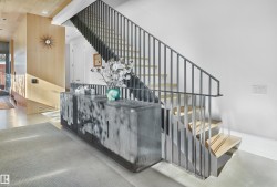 Designed by Edmonton City Architect Carol Belanger, this remarkable Old Glenora residence reinterprets the low-slung modernist home that once stood on the site. With over 2,800 sq. ft. of finished living space, it balances heritage and innovation with quiet confidence. The striking stone chimney, painstakingly rebuilt from salvaged materials, anchors the home in its history while defining a new architectural chapter. Inside, a luminous ribbon window traces the south façade, framing open horizons and intimate moments in equal measure. Wrapped in warm wood and textural stone, the upper level appears to float, a refined nod to a modern tree fort. Light shifts gently across each surface throughout the day, revealing new tones and textures. Every material, polished concrete, natural textural wood, cold-rolled steel, and verdant tile, contributes to an atmosphere of enduring craftsmanship and understated luxury. This is contemporary Edmonton living, rooted in legacy and elevated by design.