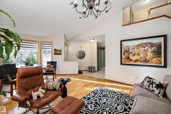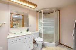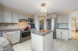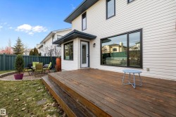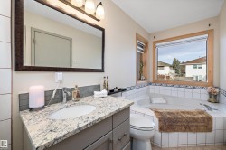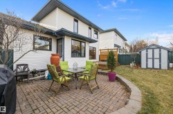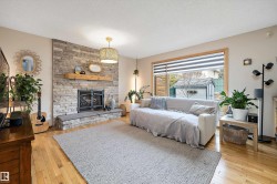 RARE OPPORTUNITY IN WEDGEWOOD! Elegant 2-storey, 4-bedroom home with timeless design, abundant natural light, a serene setting in a safe no-thru-traffic community near the Henday. Vaulted ceilings and new windows brighten living and dining areas; kitchen features updated cabinetry and SS appliances overlooking a cozy family room with a heart of the house gas fireplace. Upstairs: primary suite with his & hers walk-in closets and 4-pc ensuite, two bedrooms and full bath. Finished basement offers a large rec area, guest bedroom, and 3-pc bath. Outdoors: mature trees, newer cedar deck with pergola, cobblestone patio, and stone landscaping. Upgrades include Lux aluminum fir clad triple-pane windows (22k 2024), Fireplace Xtrordinair w/ cast-ironed doors (9k 2020), cedar deck (2022), granite countertops in bathrooms (2022), fridge (2024), and HWT (2017). Steps to Wedgewood Ravine and central park with courts, playgrounds, and trails—a well-cared-for home in one of SW Edmonton’s most desirable communities!