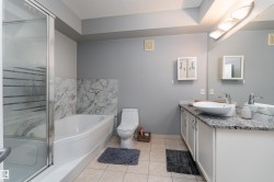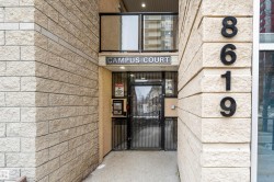 Ideally located just steps from the University of Alberta, this turnkey 1,020 sq ft condo is perfect for professionals, students, or investors and comes fully furnished for immediate enjoyment. The bright, open kitchen features white cabinetry, granite countertops, a large island with sink and seating bar, flowing seamlessly into the dining area and spacious living room. Floor-to-ceiling windows fill the living space with natural light, creating an inviting setting for entertaining. Both bedrooms are generously sized and offer excellent closet space. The ensuite 4-piece bathroom includes a soaker tub, ample counter space and a door to the living room. Enjoy the convenience of a private in-suite laundry room and a large patio with plenty of room for outdoor seating. Located directly across from the University of Alberta, with easy access to public transit, Whyte Avenue, restaurants & shopping. With underground parking and storage, this home delivers an unbeatable location for comfortable city living.