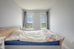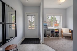 Welcome to this modern townhouse for sale in Griesbach, one of Edmonton’s most sought-after communities! This move-in ready home features an open-concept main floor with durable vinyl plank flooring, A/C, and abundant natural light. The bright white kitchen offers ample cabinetry, a large island, stainless steel appliances, and direct access to a private deck—perfect for BBQs and outdoor entertaining. The dining area showcases a stylish feature wall, while the spacious living room includes a large front window. Upstairs, enjoy a generous primary bedroom with double closets, a second well-sized bedroom, and a 4-piece bathroom. The lower level includes a versatile flex space ideal for a home office, gym, or guest room, plus a convenient 2-piece bath and direct access to the oversized attached garage. Located steps from parks, green spaces, walking trails, schools, and shopping, this home is ideal for first-time buyers, professionals, or investors. A fantastic opportunity in a family-friendly neighbourhood!