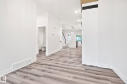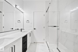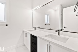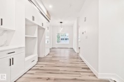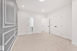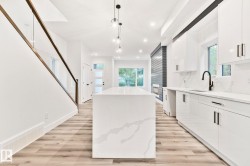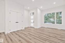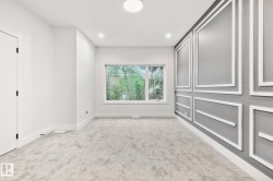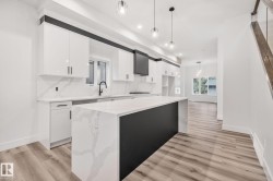 Welcome to this stunning brand-new architecturally designed 2-storey home in desirable Westmount. Featuring 5 bedrooms, 4 bathrooms, and a fully finished basement with separate entrance, this home offers space, style, and potential for a future legal suite. The main floor boasts 10 ft ceilings, triple-glazed windows for natural light, a spacious living room with elegant fireplace, chef-inspired kitchen with quartz countertops, large island with waterfall edge, premium finishes, bright dining area with west-facing deck access, and mudroom with built-ins. The double detached garage is accessed via the back lane. Upstairs offers a serene primary suite with walk-in closet and custom feature wall, two large bedrooms, full bath, and laundry. The finished basement has a rec room, two bedrooms, and full bath—ideal for extended family or suite. Prime location near downtown, U of A, and river valley.