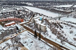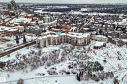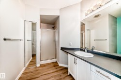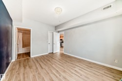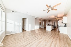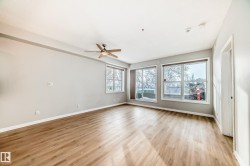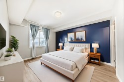 CENTRAL LIVING AT ITS FINEST! Welcome to this gorgeous, luxury two-bedroom condo unit in the incredibly desirable neighbourhood of Riverdale! This condo gives you walking access to all the great amenities within downtown Edmonton, while sitting perched right on the North Sask River Valley. Walk through the front door and you will be blown away by the front to back sight-lines and 9 foot ceilings throughout. The kitchen is a chef's dream including 9-foot island with raised breakfast bar, ample white cabinetry, gas range and more! Adjacent dining room is a fantastic space to host your dinner parties. The living room is spacious & bright with access to southwest facing patio featuring stunning river valley & downtown views. The primary bedroom is your own personal oasis with walk-in closet and 4-piece ensuite. Second bedroom is also a very good size, with 3-piece main bathroom just outside the door. Unit also features in-suite laundry, air conditioning, TWO titled underground parking stalls, and much more!