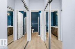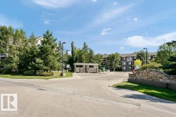 This lovely 2 bed/2bath PLUS den with updated flooring throughout has tons of space! It features an open concept design for kitchen/dining/living with bedrooms tucked far away down the hallway giving plenty of privacy from the living space! The large open kitchen includes upgraded granite countertops with updated SS appliances and opens onto the dining and family room, and the covered patio offers a private oasis with gas hook-up to BBQ year round. The massive primary bedroom includes a 4 pc. ensuite and walk-through closet, and the second bedroom offers tons of space to spread out! Your home also comes complete with in-suite laundry and a den - as well as central A/C for the summer and a fireplace for cozy winter nights. Also included is a titled underground parking stall c/w storage unit. Enjoy fantastic amenities with an exercise room, social/games/theatre room and guest suite rental for extra visitors. Close to shopping, schools, public transit, and just off the Henday to zip anywhere in the city!