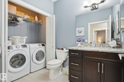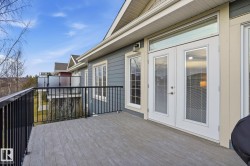 Welcome to the stunning River’s Edge Villas, a low maintenance 55+ ADULT community along the North Saskatchewan River! Live the height of luxury in this pristine bungalow w/WALKOUT BASEMENT. The great-room concept is bright & airy & features vaulted ceilings, H/W flrs w/infloor heating, a gas FP & southwest windows w/garden doors opening to balcony overlooking a tranquil pond & lush greenspace! The dining area is spacious enough for a full dining set & flows into the island kitchen featuring granite cntrs, SS appliances & rich wood cabinets. Down the hall is the serene, well sized primary bedroom w/blackout blinds, a 4-piece ensuite & walk-in closet. In the fully finished basement, you’ll find a spacious family room w/a wet bar, plus a 2nd bedroom, a 4-piece bathroom, & a generous utility/storage room. Garden doors off the family room open to a screened-in patio. The double-attached garage has epoxy flooring w/a floor drain, & includes both hot/cold water hookups. Outdoor gas hookups up/down.