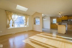 Welcome to this beautifully maintained 2,071 ft2 4 Bed 3.5 bath Landmark-built home in the heart of LEGER. The timeless plan offers a Bright, Open layout with a South-facing yard, filling the home with light through Skylights in the eating nook & great room. You’ll love the warm hardwood floors, fireplace & spacious formal dining area. The kitchen features maple cabinetry, Stainless Appliances & plenty of prep & storage space. Upstairs, the primary suite includes a walk-in closet and a 5-piece ensuite with separate shower. Two Large bedrooms, a full Bath, and a large bonus room with 9’ ceilings complete the upper level. The home offers a FULLY finished basement (with permits) 1 Bedroom, Full Bath, Rec room & lots of Storage. Notable updates include a newer HOT water tank, AND newer ROOF (approx. 3 years old). Additional features include main floor laundry, landscaped yard, and Double Garage. Located on a quiet street in one of SW Edmonton’s most desirable neighbourhoods. Some Pics are Virtually Staged