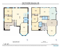 Walk in, walk out, but don’t walk away. Welcome to 1324 70 St SW in Summerside, offering over 3,600 sq ft of total living space where comfort meets quiet luxury. From the moment you pull into the triple car garage and step inside, you’ll feel the openness this custom 2.5 bi level walkout provides. Set on the largest lot in its cul-de-sac, this home offers space, parking, and easy access. Sunlight fills the vaulted living room, where warm hardwood and a gas fireplace create a cozy retreat. The main floor features 4 spacious bedrooms and 3 full baths, incl. 2 ensuites. Up a few quiet steps, the master retreat enjoys a floor of its own, offering calm and seclusion after long days. The walkout basement adds 2 bedrooms, a 4th full bath, laundry, a wet bar, and an acoustically treated theatre room complete w/ projector. Freshly painted, with refinished hardwood, laminate (2022), and new LVP under warranty until 2026. Close to schools, parks, the airport, and highways, this home is perfect for all stages of life