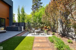 Elevated Architecture Meets the River’s Edge: On prestigious Ravine Drive, where the city blends with the beauty of the river valley, sits this thoughtfully designed luxury home. Bathed in southern light and poised above the trees, this architectural triumph by award-winning visionary Rick Arndt was conceived to harmonize with its surroundings and offer unparalleled comfort. Over 5,500 square feet of curated living space: 4 bedrooms plus an office, 6 bathrooms, and a rooftop terrace that blurs the boundary between interior and sky. Here, a wet bar awaits sunset cocktails. Natural light bathes the chefs kitchen, the living room, & the luxurious primary suite. A two-storey family room with an exquisite book-matched natural stone fireplace enjoys an entire wall of windows & overlooking the private yard with outdoor kitchen area. Crafted by Urbis Developments—whose name is synonymous with integrity, precision, & excellence. Triple garage. Landscaped grounds. Elevator-ready. Timeless, yet unmistakably modern.