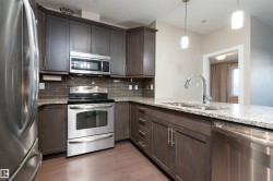 Welcome to the Waterstone, a quality complex in the heart of MacTaggart. This STUNNING unit features 2 spacious bedrooms, 2 bathrooms, a chefs kitchen with ample cabinet space, granite countertops and an open concept living/dining space. Central AIR CONDITIONING and INSUITE LAUNDRY are also included for your comfort and convenience. Perfect for 1st tie buyers, a retiree looking to downsize, am investor, or someone who needs quick access to YEG. Just down the hall you will find the amazing amenities this building has to offer including the GYM, PARTY/SOCIAL ROOM, GUEST SUITE for your out of town guests and community gardens. Heated underground parking w/storage cage. Pet Friendly building. Walk out the front door to enjoy the network of walking trails MacTaggart has to offer starting with the ones around the gorgeous pond that The Waterstone is located by.