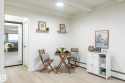 A fabulous end-unit condo with stunning river valley views in one of Edmonton’s most iconic high-rise communities. This bright 1 bed + den/storage room home features vinyl plank flooring, a renovated kitchen and bathroom, and a generous open layout with floor-to-ceiling windows. The large east-facing balcony is perfect for morning coffee overlooking the trees and city skyline. The bedroom fits a king bed and includes a walk-in closet, plus there’s excellent storage throughout. Enjoy resort-style amenities: indoor pool, sauna, gym, and recreation room. Heated underground parking with the stall conveniently located near the parkade entrance + main lobby door. Steps to the river valley, trails, Legislature grounds, LRT, and downtown. Urban living with nature at your doorstep! Condo fees also include unit heat and water.