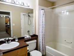 Top floor, Two bedrooms, Two bathrooms, Two titled surface parkings, One stall is located close to the front entrance. New Stainless Steel kitchen appliances with warranty. Bedrooms have extra large windows. Covered balcony 6'5"x11'2". Low condo fees. Walking distance to a park and across from the Fresh Market, banks, shops and restaurants. Public transit is just a few steps away. Conveniently located on Rabbit Hill Road and near Anthony Henday Drive making commuting simple and accessible.