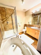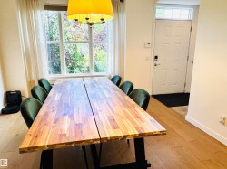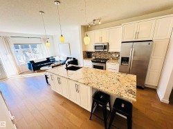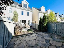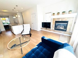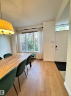 This BEAUTIFUL, BRIGHT END UNIT townhome in award wining Griesbach features over 2600sqft of total living space with a wonderfully executed floorpan. Upon entering, you’re greeted with a huge dining area and newly upgraded wide plank engineered oak hardwood floor. An upgraded open concept kitchen with granite and stainless steel appliances separates the sun-lit dining and living room which leads to a wonderful WEST facing, landscaped backyard & double detached garage. A cozy gas fireplace and a 2pc bath are also conveniently tucked away to make this first floor a warm, cozy space you’ll love. The second level features a HUGE FAMILY ROOM (which could also be an office or bedroom), a large bedroom with walk-in closet and 4pc ensuite, as well as laundry. The third level is the PRIMARY SUITE with sitting area, vaulted ceilings, walk-in closet and an expansive ensuite with double sinks, soaker tub and separate stand-up shower. FULLY FINISHED basement w/ bonus room & wet bar and a flex/storage space.