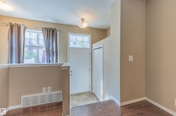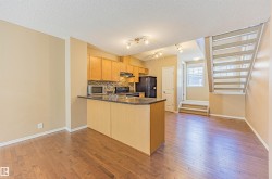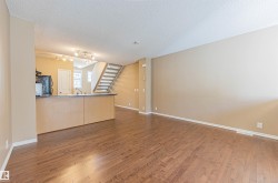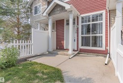 Location. Size. Affordability! This is THE townhome for you! Beautifully maintained & pet-friendly complex offers exceptional value in one of West Edmonton’s most desirable communities. This bright & inviting 2-storey townhouse features open-concept main floor design w/ spacious kitchen featuring peninsula, ample cabinetry & generous counter space. The dining area & living room flow seamlessly together, enhanced by rich hardwood flooring & large windows. Convenient 2-piece bath completes the main level. Upper level is home to two large primary bedrooms, perfect for those who prefer larger rooms (over 3 small ones). Fenced front yard w/ charming front porch, gas hookup & space for patio furniture—ideal for relaxing or entertaining! This property is ideally located near Costco, River Cree, the future LRT station & several schools. Low condo fees of $320.91/month & taxes of $2,146.66/year make this an excellent option for first-time home buyers & investors at this new LOW price!