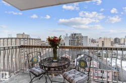 Breath taking downtown sunrise views you can enjoy every day or night & know this suite in Oakwood Towers is affordable & adorable with all the current updates. This suite was updated a few years ago with bathroom updates, freshly painted, new mirrored closet doors, new electrical light fixtures and other updates but still needs new flooring. Condo fees $523.37 includes everything, all utilities, free laundry same floor, Condominium allows Airbnb and all pets but reptiles. Underground parking stall #18 is $80 per month for your parking stall. The building is renovating to high standards including new generator, new elevators, windows, pool & roof. Free laundry on even floors by elevator. Incredible long term value in this fantastic building located in Oliver downtown well below replacement costs. This amazing location allows you to walk to everything including Grant McEwan University, Restaurants, Grocery Stores, River Valley & your work.