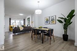 Discover life in Quarry Vista, a vibrant and growing community celebrated for its family-friendly atmosphere, nearby schools, parks, and everyday conveniences. Discover the Kenton-Z by Akash Homes, a beautifully crafted 1548 sq ft two-storey home in Quarry Vista. Designed for modern family living, this home features an open-concept main floor which offers 9' ceilings, flowing French-imported laminate flooring and an open-concept flow where the kitchen, dining, and living areas connect seamlessly - perfect for entertaining or everyday comfort. Large windows fill the space with natural light, highlighting stylish finishes and thoughtful design details throughout, including an electric fireplace in the living room. Upstairs, enjoy a flex space, laundry closet, and three spacious bedrooms, including a primary suite with a walk-in closet and a private ensuite. Added perks include a separate side entrance, ideal for future development, and a double detached garage.