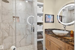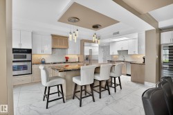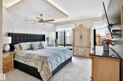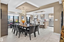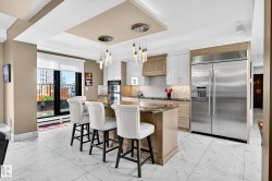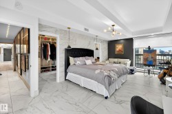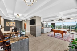 Breathtaking Penthouse – Fully Redesigned –Impeccable attention to detail – Luxury, design & location converge in this spectacular 3039 sq ft, 3 bdrm, 4 bath residence overlooking Edmonton’s stunning River Valley. With no expense spared, this one-of-a-kind residence showcases premium finishes, new mechanical systems, sound proofing and the latest in modern design innovation. Your private elevator opens to a floor plan bathed in natural light, offering floor-to-ceiling views of the river valley, golf course, city skyline, and beyond. The chef-inspired kitchen is a showstopper w/quartz countertops, massive centre Island, custom cabinetry & high-end integrated appliances. Each room flows seamlessly onto a private wrap-around terrace –ideal for entertaining or quiet reflection.The primary suite & second bedroom (each with city views) have ensuites w/custom WI closets. Every inch of this home has been thoughtfully curated with premium materials, timeless elegance, and smart functionality + 3 Parking Stalls.