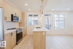 Welcome to Essential Glenridding, where luxury living meets modern convenience! This stunning new 3-story condo features new designer finishes that will take your breath away. On the lower level, you'll find a convenient single attached garage. As you make your way upstairs, you'll be greeted by the open-concept main floor that offers a half bath and a private balcony perfect for hosting summer BBQs. The kitchen features quartz countertops, waterline to fridge and upgraded cabinets. It's the perfect space to whip up your favourite meals. Head upstairs to discover a laundry room, full 4-piece bathroom, 2 large bedrooms, and a spacious master suite complete with a walk-in closet and luxurious ensuite. The master even comes with its own private balcony, where you can enjoy your morning coffee. This home also comes with a generous 3k appliance allowance and is fully landscaped. CONSTRUCTON TO START MID MAY. Photos may differ from actual property. Appliances not included.