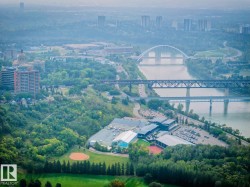 Live steps from everything in this FULLY RENOVATED 2-bedroom, 2-bath condo. Set high on the second-from-top floor, this home offers unforgettable sight lines of the River Valley, Legislature grounds, High Level Bridge, and the downtown skyline from every window. The open-concept layout includes updated finishes and a seamless flow, making the space feel instantly welcoming. Bedrooms are thoughtfully placed on opposite sides for privacy, creating a floor plan ideal for guests, roommates, or a dedicated home office. The spacious primary suite includes a 4-piece ensuite, Heated underground parking, a car wash bay, and a nearly complete outdoor courtyard add comfort and ease to daily living. Condo fees include all utilities except electricity, offering simple and predictable budgeting. With the LRT, Victoria Park, River Valley trails, cafés, restaurants, U of A, MacEwan, and downtown amenities at your doorstep, this home blends urban convenience with unmatched scenery—an incredible place to live Central.