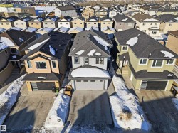 Welcome to this immaculate home located in the desirable community of McConachie. Offering over 2,500 sq. ft. of thoughtfully designed living space, this property features 4 bedrooms, 3 bathrooms, and a main-floor den, perfect for a home office or flexible living space. The main level showcases a bright, open-concept layout highlighted by an impressive open-to-below design, a functional walk-through pantry, and a convenient 4-piece bathroom. Upstairs, the spacious primary bedroom offers a true retreat with a walk-in closet and a luxurious 5-piece ensuite. The unfinished basement with a separate entrance provides excellent future suite potential or the opportunity to customize to your needs. Additional highlights include a finished double attached garage with built-in storage at the entrance. Well maintained and move-in ready, this home stands out for its space, functionality, and thoughtful design