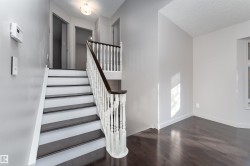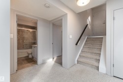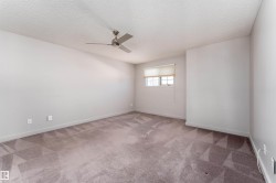 Charming 3-level split half duplex located in the sought-after adult living community of Whitemud Creek Estates, Ogilvie Ridge Phase 1. A bright and spacious living room welcomes you with a cozy fireplace—perfect for relaxing evenings at home. The kitchen features crisp white cabinetry and ample counter space, while the adjoining dining area is filled with natural light from a large window overlooking the deck. Upstairs, the primary bedroom offers a peaceful retreat with a walk-in closet and a 4pc ensuite. A second bedroom and an additional 4pc bathroom complete the upper level. The fully finished basement adds even more living space, featuring a generous recreation room with a second fireplace, a third bedroom, a 4pc bathroom, and convenient storage. Step outside to a spacious deck and fully fenced yard. Added comforts include air conditioning, Hunter Douglas blinds and a double attached garage. Low-maintenance living in a serene community surrounded by mature trees and nearby walking trails.