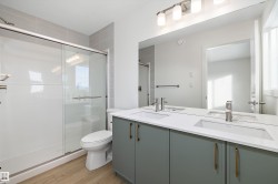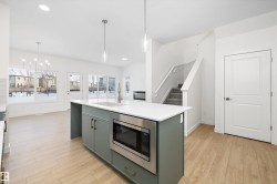 Built by Sterling Homes, this Affinity model is ideally located on an oversized pie-shaped lot backing onto quiet green space w/ scenic walking paths—offering rare privacy, added yard space & a peaceful natural setting. Perfect for families and outdoor enjoyment, this home combines an exceptional lot with modern design. The main floor features a rare main-floor (5th)bedroom with adjacent 3-piece bath, ideal for guests or multi-generational living. The open-concept great room with fireplace flows into a chef-inspired kitchen with quartz countertops, flush-ledge island, chimney-style hood fan, and soft-close cabinetry. Upstairs offers a spacious bonus room, a bright primary suite with large walk-in closet and 4-piece ensuite, three additional bedrooms, and a dedicated laundry area. Completing the home are a double attached garage, separate side entrance, brushed nickel fixtures, and the Sterling Signature Specification—delivering comfort, function, and an outstanding lifestyle setting.