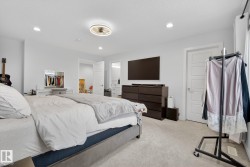 Discover luxury living in Windermere with this beautifully finished half duplex featuring no condo fees and a bright, modern design throughout. Enjoy quartz countertops, a gourmet kitchen with contemporary cabinetry, a walk-in pantry, and neutral tones that create a warm, inviting atmosphere. Step out from the kitchen onto the deck complete with a gas hookup perfect for year round barbeques. The upper level offers a convenient laundry room, a spacious bonus room, and a serene primary suite with an en-suite bath and walk-in shower. A cozy gas fireplace enhances the main living area, while the attached double garage adds everyday convenience. The private, oversized pie-shaped yard with no rear neighbours provides exceptional space and privacy. Central air-conditioning was added in 2022. There is a side entrance which leads to the undeveloped basement to create your own space. Close proximity to shopping, restaurants, parks, schools, and transit. This is truly an exceptional property.