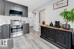 completely renovated, stunning, and thoughtfully designed, this 4-bedroom, 2.5-bath, two-story home is located in the highly sought-after La Perle neighborhood. The main floor welcomes you with a recently upgraded kitchen featuring elegant quartz countertops, stainless steel appliances, and ample cabinetry. The spacious living room, bright dining area, and convenient 2-piece bath create an ideal layout for everyday living and entertaining. Upstairs, the primary bedroom offers comfort and privacy with direct access to a 4-piece bathroom and private balcony while two additional generously sized bedrooms share the same full bathroom through a second door. The fully finished basement adds featuring an additional bedroom with attached 3-piece bathroom perfect for parents, guests, or a home office along with a large storage room providing plenty of space for organization. single parking covered carport. Prime location walking distance to west Edmonton Mall, schools, public transportation, and walking trails.