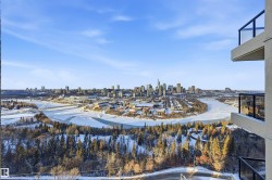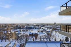 Great location on Saskatchewan Drive for those looking for proximity to University, Downtown or Edmonton's River Valley! This 2 bedroom & 2 bath unit boasts a spacious living room with south city views. Lots of natural light throughout with oversized windows! Plus patio off of living room. Primary bedroom has walk through closet to 4pc ensuite with renovated vanity. Second bedroom has access to second bathroom too (also renovated vanity). Well-sized kitchen with walk-in pantry/storage. Freshly painted unit!. Laundry rooms located on each floor too. Plus TWO STALLS (covered/powered parking)! Building boats amenities such as gym, racket courts & outdoor sports court. Restaurants, shopping, medical & more all within the immediate area. Bike lanes close by. Easy access to transit. Farmer's market nearby and location is at the center of so many of Edmonton's summer festivities!