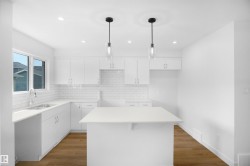 NO CONDO FEES, SEPARATE ENTRANCE and AMAZING VALUE! You read that right welcome to this brand new townhouse unit the “Manhattan” Built by the award winning builder Pacesetter homes and is located in one of Edmonton's newest premier west end communities of River's Edge. With over 1400+ square Feet, this opportunity is perfect for a young family or young couple. Your main floor is complete with upgrade luxury Vinyl plank flooring throughout the great room and the kitchen. Highlighted in your new kitchen are upgraded cabinets, upgraded counter tops and a tile back splash. Finishing off the main level is a 2 piece bathroom. The upper level has 3 bedrooms and 2 bathrooms. This home also comes completed with front and back landscaping. *** This home is under construction and will be complete by February 2026 , photos used are from the same model recently built but colors may vary ***