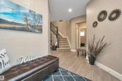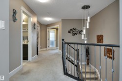 Beautiful EXECUTIVE 2 storey home with 3600 sqft total living space, low maintenance ARTIFICAL TURF, DECK!UPGRADED with Brand new CARPET and COUNTER TOP STOVE(2026) , Coved 9' ceiling, HIGHEND Espresso cabinetry, QUARTZ counters,massive ISLAND in the Chef's kitchen with B/I SS appliances, FRENCH door to the large walk thru BUTLER PANTY to the Mudrm leading to the oversized Finished HEATED Garage. GREAT rm with FEATURE GAS FIREPLACE is open to the kitchen, leading to the deck. Main flr Bedrm/DEN with DOUBLE FRENCH doors. Upstairs is the PRIMARY RETREAT, LARGE BONUS rm with feature wall & High VAULTED ceiling, DOUBLE FRENCH DOORS and 2 more bedrms up.The Primary retreat is total lux with 5 pce ENSUITE Bath incl.CORNER SOAKER TUB, LARGE 5' shower, extended 2 sink VANITY across the room is the DREAM W/I CLOSET! The basement is professionally finished with large GAMES/FAMILY rm open to the GYM and has 5th bedroom, 2nd DEN, 3rd full Bathrm with Large TILED shower and beautiful vanity.Near SCHOOL,PARKS & TRAILS!