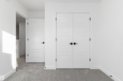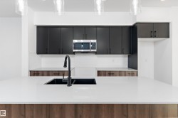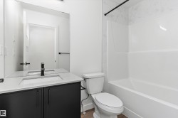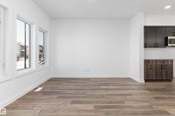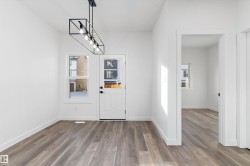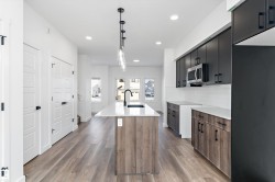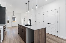 Discover the Sylvan by Sterling Homes, a well-crafted home designed for comfort and functionality. The main floor features luxury vinyl plank flooring and a welcoming foyer with coat storage leading to a bright great room. The kitchen offers quartz countertops, an island with flush eating ledge, Silgranit undermount sink, pendant lighting, over-the-range microwave, soft-close cabinetry with upgraded door profiles, and a pantry tucked near the stairs. At the rear, the sunlit nook overlooks the backyard and sits beside a main-floor bedroom and 3-piece bath with stand-up shower, with a garden door to the outdoors. Upstairs includes a primary suite with walk-in closet and 4-piece ensuite with tub/shower combo, two additional bedrooms, a full bath, and a laundry closet. 9’ ceilings on main and basement levels, a separate side entrance, black plumbing and lighting fixtures, basement rough-in plumbing, and a parking pad with option for a detached double garage complete this home.