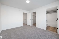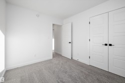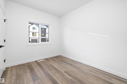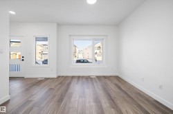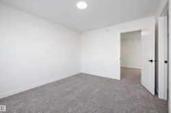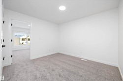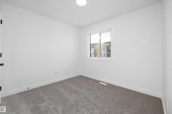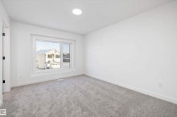 Welcome to the Sylvan by Sterling Homes, a stylish home blending modern design and functionality. The main floor features luxury vinyl plank flooring and a welcoming foyer with coat closet opening to a bright great room. The kitchen offers quartz countertops, island with flush eating ledge, Silgranit undermount sink, pendant lighting, over-the-range microwave, soft-close cabinets with upgraded door profiles, and a pantry tucked near the stairs. At the rear, a sunlit nook overlooks the backyard and sits beside a main-floor bedroom and 3-piece bath with stand-up shower, with a garden door to the outdoors. Upstairs features a primary suite with walk-in closet and 3-piece ensuite, two additional bedrooms, a full bath, and laundry closet. 9’ ceilings on main and basement levels, separate side entrance, black plumbing and lighting fixtures, basement rough-in, and parking pad with option for detached double garage complete this home.