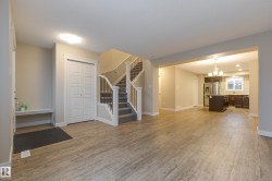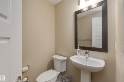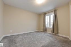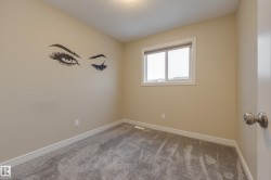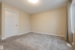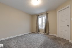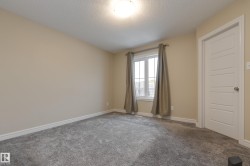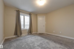 Delightful Desrochers townhome has NO CONDO FEES! Everything you could ask for PLUS a double detached garage. Great location across from the school and park. Spacious front foyer and a very open main floor with living room flowing through to dining and the kitchen at the back has a large island, quartz counter tops and lots of cabinets. Stainless steel appliances are included. Main floor laundry room at the back entrance and the half bath is strategically located at the basement entry. Basement is not developed but potential is there for adding more living space in future! The staircase to the second floor has spindle rails and an open area at the top of the stairs plus two good sized bedrooms share a full bathroom. The primary suite is large with a full ensuite bath and a large walk-in closet. This is a perfect affordable home in an exceptional location.