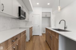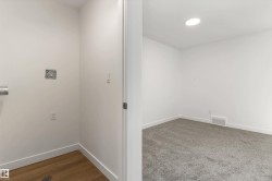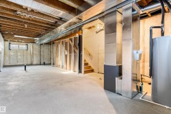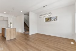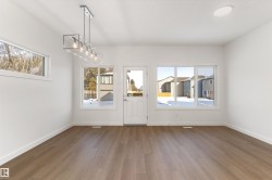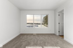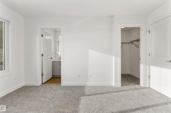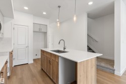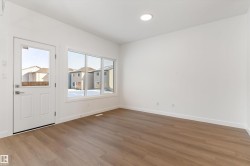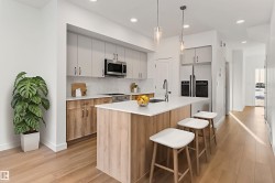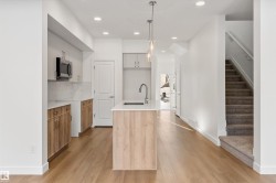 Built by Sterling Homes, this 1,619 sq. ft. laned home in Edgemont Place blends smart design with family-friendly functionality. The main floor features 9’ ceilings, luxury vinyl plank flooring, and a bright open-concept layout with triple pane windows. At the front, a main-floor bedroom and full bath offer flexibility for guests or home office needs. The rear kitchen includes quartz countertops, an island with seating, full-height tile backsplash, corner pantry, and a window over the sink. The dining area and living room flow seamlessly to the backyard through a central garden door. Upstairs, you’ll find a cozy bonus room, a spacious primary suite with walk-in closet and private ensuite, plus two additional bedrooms and a full bath. A convenient laundry closet completes the upper level. Additional features include a separate side entrance, 9’ basement ceilings, and basement rough-ins for future development.