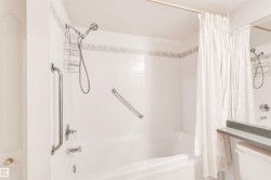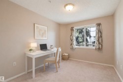 Welcome to Californian Manor II, a well-maintained 55+ adult living community with elevator access. This bright one-bedroom + den, one bathroom unit offers an open concept living and dining area with large windows. The den provides flexible space and may be used as a guest room or home office. The kitchen includes a refrigerator, oven/stove and dishwasher. The unit features in-suite laundry with washer and dryer. Titled underground parking and a private storage unit are included. Building amenities include a social room, guest suite, car wash bay and an exercise room which is conveniently located on the same floor. Ideally located in the Summerlea neighbourhood, this property is within walking distance to Terra Losa Shopping Centre, public transit, grocery stores, restaurants, pharmacies and everyday services.