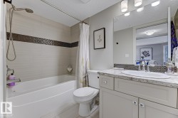 Experience elevated living at The Parc in Edgemont Ravine, in this beautifully appointed 2-bedroom, 2-bath residence situated in a boutique, 18+ community complex. Meticulously maintained and bathed in natural light, the open layout showcases premium finishes, a chef-inspired kitchen with a sprawling island, in-suite laundry, and air conditioning for year-round comfort. Enjoy morning coffee or evening wine on your private balcony with a natural gas BBQ hookup, surrounded by lush ravine views and scenic walking trails. Your titled underground parking and storage unit add convenience, while abundant visitor and street parking make entertaining effortless. The building’s curated amenities include an elegant lobby, social lounge, and inviting outdoor seating area — all designed to enhance a sophisticated, low-maintenance lifestyle. A truly exceptional opportunity for discerning buyers seeking ravine living, tranquility, and timeless style.
