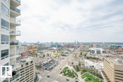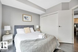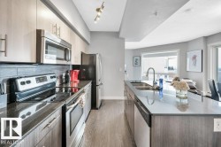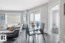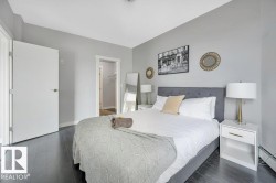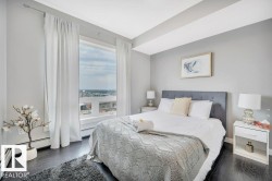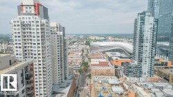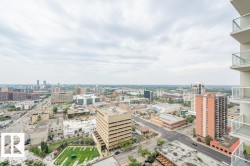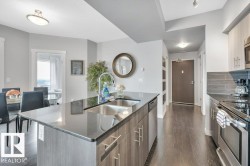 Spacious 2-bedroom, 2 bathroom condo in Fox One, just one block from Rogers Place! This modern unit features an open-concept layout with a bright living room, dining area, and a stylish kitchen with a large, functional island. The foyer is flanked by a 4 -piece main bathroom and a convenient laundry room. The primary bedroom boasts a walk-in closet and a 4-piece ensuite, while the second bedroom is located just off the dining area. Enjoy plenty of natural light and breathtakng downtown views from your private 21st floor balcony. This unit also includes a heated parking stall and a heated visitor parking. With a dog park across the street and an array of restaurants and shops within walking distance. This is urban living at its finest!