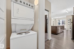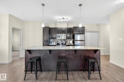 AMAZING opportunity to own this 985 sq.ft BRIGHT & MODERN 2 BED+DEN & 2 Bath CORNER Unit with TANDEM (2) UNDERGROUND PARKING & STORAGE CAGE located in the highly sought after & conveniently located community of AMBLESIDE! Surrounded by walking trails, you'll love being just STEPS to the Currents of Windermere with endless shops, restaurants & amenities and quick access to the Henday. This beautiful home offers an open concept floor plan with 9 Ft ceilings & LARGE WINDOWS THROUGHOUT and features a CAPTIVATING kitchen with an EXPANSIVE island with stunning granite counters, sleek s/s appliances & espresso cabinetry & overlooks the spacious living room & dining room that separates both bedrooms for added privacy. The versatile den is great for a home office or extra storage. The primary bedroom offers a walkthru closet & 3pc ensuite & rounding off the space is the 2nd bedroom, 4pc bath & INSUITE LAUNDRY. Building amenities include the FITNESS CENTRE, GUEST SUITE & SOCIAL ROOM complete with a pool table.