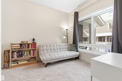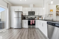 Stunning Corner Unit Townhome in Athlone! Welcome home to this spacious and beautifully laid out corner unit townhouse that is perfect for a young family or anyone needing extra bedrooms and flexibility. The main floor features a welcoming entryway, a first bedroom ideal for guests or a home office, and direct access to the attached double garage. The second level offers a open concept living space with a cozy electric fireplace that flows seamlessly into the well sized kitchen and dining area. Step outside to the back patio which is perfect for summer BBQs and entertaining. Upstairs the sun filled primary bedroom features southern exposure and a well appointed ensuite. Two additional bedrooms, a full bathroom, and convenient upper floor laundry complete the top level. Amazing value in a fantastic location with quick and easy access to St.Albert Trail and Yellowhead Trail making commuting simple and convenient.
