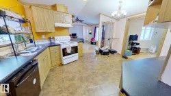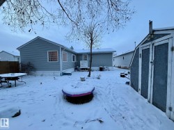 Welcome to this 3-bed 2-bath, 1650 sq ft mobile home in WVV. Bring your ideas, pick your colours, and make it your own! Refurbish on your own timeline - finish the cosmetic repairs with peace of mind knowing many major items have been updated: fridge 09/21, heat trace repairs 01/22, shingles 06/23, furnace, stack, thermostat, and hwt 12/24, deck upgrades 08/25, primer on most walls 10/25, range 01/26. Living/entrance addition and powered shed 2012. Fully fenced lot, mature trees, flower beds, 2 veg gardens (mature chives, oregano, and parsley), and young raspberry bushes. This lot backs out on to a treed green space and is near a bus stop. WVV has 2 playgrounds, a pond that attracts migratory birds, ice rink, a gym, gas station, a pharmacy, daycare facility, pub, and RV storage. Schools nearby and quick access to the Anthony Henday and Hwy 16. Windows(including skylights) and doors(interior and exterior) need replacing but are functional. Jetted tub may need new motor, and needs to be reinsulated.
