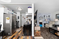 This unique styled, 2 level apartment condo in Belvedere, offers over 1100 sq ft of living space. The main floor features a galley kitchen with newer stainless appliances, dining room, 2pc bathroom and a spacious living room with sliding doors leading you to the private, sunken walk-out patio. The upper level has 2 good size bedrooms, a large 4-pc bathroom and a good sized storage room. From there you also have access to the newly renovated, common laundry room just outside the upper door. In addition to the in suite storage there is also a separate indoor storage room (1.66mx1.11m) in the building foyer by your suite. The complex has seen many upgrades including windows, siding, shingles, resurfaced parking lot, laundry rooms & heating system. Your parking stall is only a few steps away from the buildings front entrance and there is plenty of visitor parking. Close to schools, restaurants, shopping and public transportation..