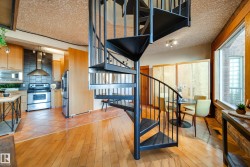 Hecla Lofts! A charming heritage walk-up with only 14 units, offering an authentic loft experience in the heart of downtown. This 3rd-floor open-concept loft/penthouse conversion is the premier unit in the building and showcases exposed brick, unique character, and a striking spiral staircase leading to your private rooftop patio. Enjoy over 500 sq. ft. of exclusive outdoor space with incredible river valley and downtown views—perfect for entertaining on warm summer nights or relaxing in your own private hot tub. Inside, the home features a blend of hardwood and ceramic tile flooring, stainless steel appliances with a built-in microwave, in-suite laundry, and large windows fitted with Shade-O-Matic blinds. The space is wired for surround sound and offers ample art and picture lighting to highlight the loft’s charm. Additional storage is available in the basement. The building is Airbnb friendly, and you’re steps to downtown, the river valley, restaurants, nightlife, and more. A truly unique property!