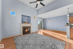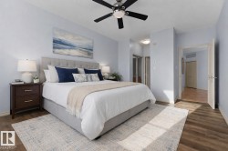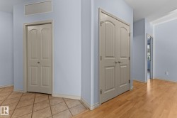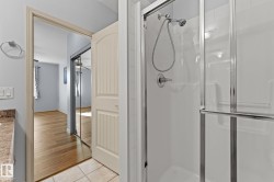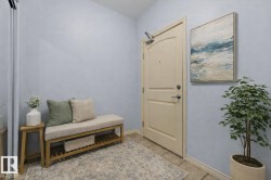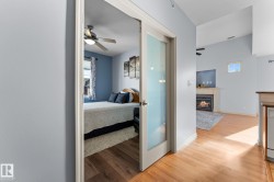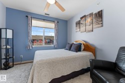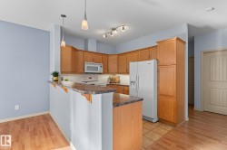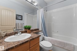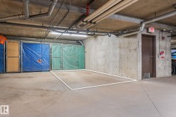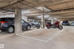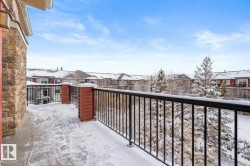 Rare offering, 3 bedroom, 2 bath top-floor corner unit w/ massive wrap-around southeast balcony. Extra large unit at over 1300 sq ft, vaulted 12-ft ceilings, a bright open-concept layout, and a. The spacious primary suite is privately located away from the other bedrooms, easily fits a king bed, and includes dual walk-through closets and a 3-piece ensuite with double sinks and a walk-in shower. This immaculate unit offers newer flooring (no carpet), A/C, gas fireplace, gas BBQ hookup. The kitchen, dining, and living areas flow seamlessly, creating an airy, light-filled space perfect for entertaining. Large laundry room w/ extra storage, 2 titled heated underground parking stalls (one beside the elevator and one beside the stairwell), and storage locker. Condo fees incl. heat, water, and sewer. Pet-friendly building offers premium amenities: fitness room, theatre, games lounge, guest suite, and car wash bay Situated, within minutes of major shopping, dining, and quick access to the Anthony Henday.