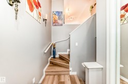 Beautifully upgraded and meticulously maintained 2+1 bedroom, 2 bathroom bi-level in the heart of Terwillegar, steps from the Rec Centre and Leger Transit Station. The main floor features vaulted ceilings, open-concept living, and luxury high-end flooring throughout the kitchen, dining, and living areas. Two comfortable bedrooms and a 4-pc bath complete the upper level. The bright lower level offers full-size windows, a large rec room with wet bar, an additional bedroom with walk-in closet, another 4-pc bath, and generous storage with a separate laundry room. Recent major upgrades include a new 2025 roof shingles on the house, new vinyl flooring and new hot water tank. Exterior features include low-maintenance landscaping with artificial turf, a large brick patio, tiered retaining wall, and a spacious double garage. A move-in-ready home offering comfort, quality, and unbeatable location.