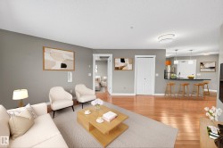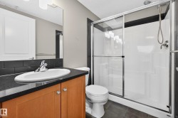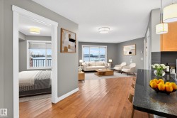 Beautiful 2 bdrm + 2 bath condo with private southwest-facing balcony & gorgeous panoramic park views – welcome to Windermere Village. Ideal for first time home buyers or investors, this spacious unit is located perfectly for quick access to the Henday & to shopping and restaurants at “Currents of Windermere”. Open-concept, functional layout offers loads of natural light from the large south windows. Kitchen features stainless steel appliances, beautiful granite counter-tops & pendant lighting. The primary bdrm is spacious with beautiful views! The second bdrm has direct access to its own full ensuite bath. Relax & enjoy evenings on the private, spacious southwest-facing balcony (w. gas line for BBQ). Unit comes with in-suite laundry, heated underground parking, visitor parking, fitness center access, beautifully landscaped grounds & excellent location with easy access to all major routes. Welcome to Windermere – welcome home! (Please note: Some photos have been virtually staged.)