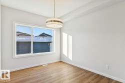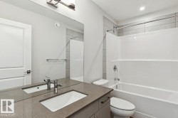 This thoughtfully designed home features a private side entrance to the main floor, offering flexible use. The open-concept main floor includes a spacious great room, central kitchen with pantry, and rear dining area, ideal for everyday living and entertaining. Luxury Vinyl Plank flooring runs throughout the main floor and bathrooms for a durable, low-maintenance finish. The kitchen and bathrooms are finished with quartz countertops, undermount sinks, and soft-close cabinetry. Upstairs offers three bedrooms, including a primary bedroom with walk-in closet and ensuite featuring dual sinks and a glass-enclosed standing shower. The second bedroom includes a walk-in closet, and an upper-floor laundry area with separate linen closet adds convenience. A double detached garage completes the property.