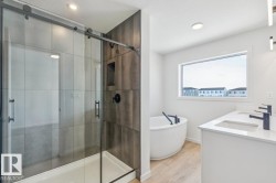 IMMEDIATE POSSESSION AVAILABLE! Welcome to the Entertain Impression 20 by Cantiro Homes! Creating a standout impression is everything to you, so you believe in putting your best foot forward whenever you have guests over. You're proud of your home and you're not afraid to show it off a little. This beautiful home is the perfect blend of 'wow' factor and function offering an oversized kitchen island, large dedicated dining space, large guest reception area at the front of the home, and electric fireplace for cozy evenings. Upstairs you will find 2 beds, laundry, recreation room and primary with luxurious ensuite offering a soaker tub for unwinding and dual sinks so no one has to share. Additional features: SIDE ENTRY, 9' foundation, Nordic fusion plus exterior and Nordic interior colorboard.