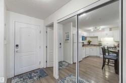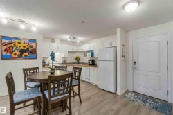 FANTASTIC VALUE in The Hamptons! This bright 2 bed/2 bath condo in Park Place Hamptons comes with 2 titled parking stalls and in-suite laundry with large storage. The open floor plan features new vinyl plank flooring throughout the entire unit, with a spacious eat-in kitchen, generous living room, and access to a private deck, perfect for BBQs or relaxing. The primary suite offers a walk-through closet and 4pc ensuite, while the second bedroom is equally roomy. Big windows bring in loads of natural light throughout. Well-maintained building with wide hallways and elevators, plus condo fees include heat, water, and more. Conveniently close to shopping, dining, trails, and quick connections to the Henday, Whitemud, and West Edmonton Mall. A move-in ready home in a great community!