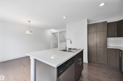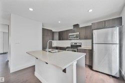 Attention investors and first home buyers! This is a beautiful and spacious 3 BED/2.5 BATH townhouse w/ DOUBLE ATTACHED GARAGE in the desirable neighbourhood of Maple Way Gardens. Main floor boasts an abundance of natural light, granite countertops throughout and quality finishings. The functional kitchen has stainless steel appliances, large island & plenty of cupboard space. On the upper level, you'll find the primary bedroom w/ 4pc ensuite & walk in closet. Two other well sized bedrooms and a full bath complete this level. The front entry patio is a great place to unwind with some fresh air. This well maintained complex offers visitor parking and is conveniently located close to shopping, walking trails & lake. Quick proximity to Anthony Henday, Whitemud, South Common, schools & public transportation. A must see!