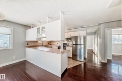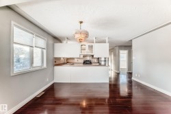 Smart investment opportunity! This well-designed home offers 1,280 sq ft on the main floor, featuring a primary bedroom w/ ensuite, 2 additional bedrooms, & a 4pc bath. Large windows flood the open-concept layout w/ natural light, highlighting the bright kitchen w/ white cabinetry, S/S appliances, & seamless flow into the dining area & generous living room. The basement has a separate entrance & is fully finished w/ a second kitchen, 2 bedrooms, and a 4pc bathroom. Updates include HWT 2020, furnace 2020, & shingles 2014. The low-maintenance backyard is fully fenced w/ privacy chain link & includes an oversized single garage +2 parking stalls off the back alley-no direct rear neighbors! Conveniently located within walking distance to all amenities, recreation Centre, & library. With quick access to Downtown, Hwy 16, and Anthony Henday its suiting for all your commuting needs. Across from St. Nicholas Catholic School and just blocks from Rundle Park & the Edmonton River Valley this home has a ton to offer!